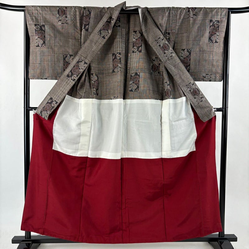 【紬】 灰色系 灰茶 秀品 A 約150cm~約159cm 裄丈67cm-68cm (L)size 袖丈48cm 7990-9980 美品 二万以下