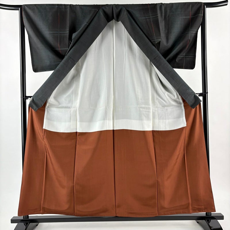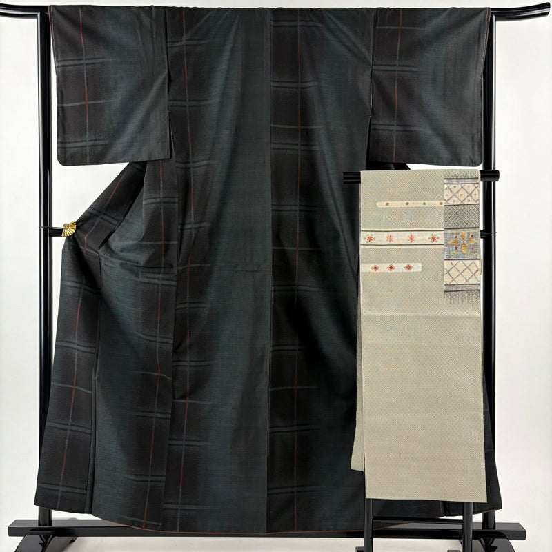 【紬】 黒系 墨色 秀品 B 約150cm~約159cm 裄丈63cm-64cm (M)size 袖丈49cm 9990-29990 五万以下