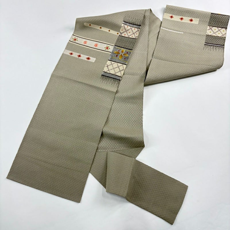 【着物ランク】秀品 【素材】正絹 【身丈】約158cm 【裄丈】約64cm 【袖丈】約49cm 【袖幅】約33cm 【前幅】約24cm 【後幅】約30.5cm 【サイズ】M 【着物仕立て】袷 【着用時期】10~5月 【帯丈2】約382cm 【帯幅2】約30.5cm 【状態ランク】ランクB 【着物着用シーン】気軽なパーティー、観劇、食事会、正月、気軽なお茶会、街着