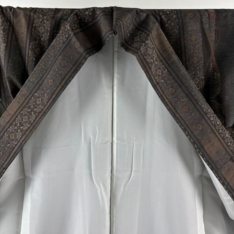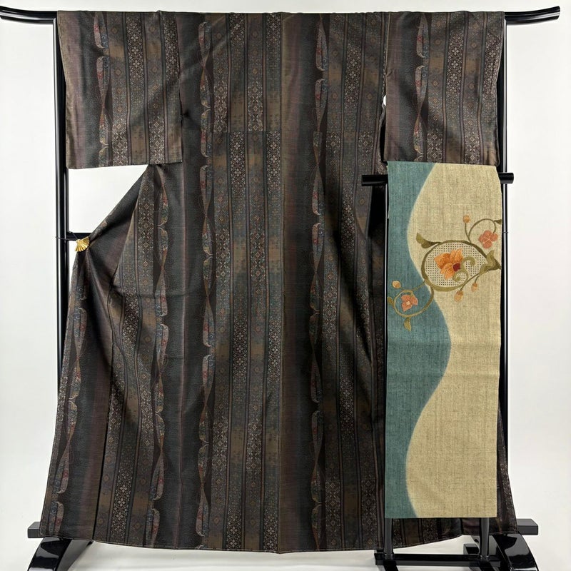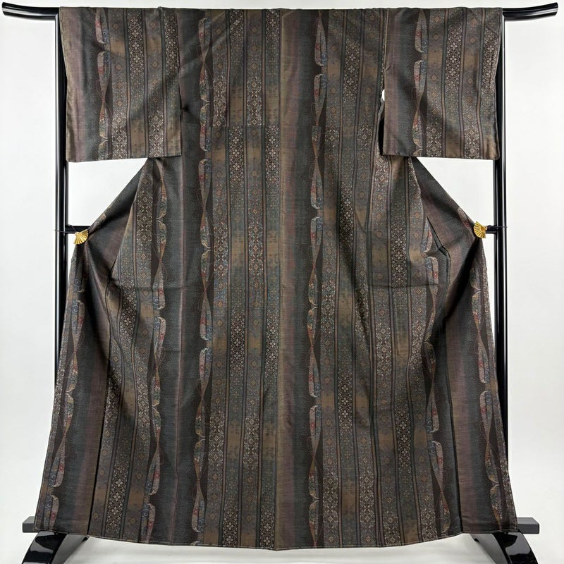 【紬】 茶系 焦茶色 秀品 A 約160cm~約169cm 裄丈65cm (M)size 袖丈49cm 9990-29990 美品 五万以下
