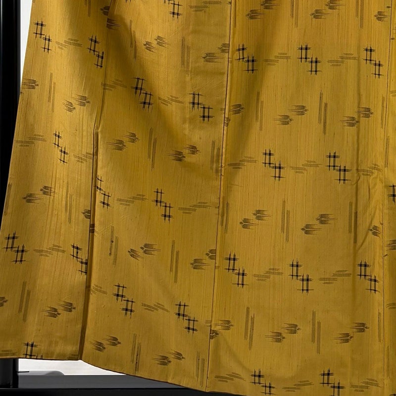 【紬】 黄色系 山吹茶色 名品 B 約160cm~約169cm 裄丈63cm-64cm (M)size 袖丈46cm以下 9990-29990 二万以下