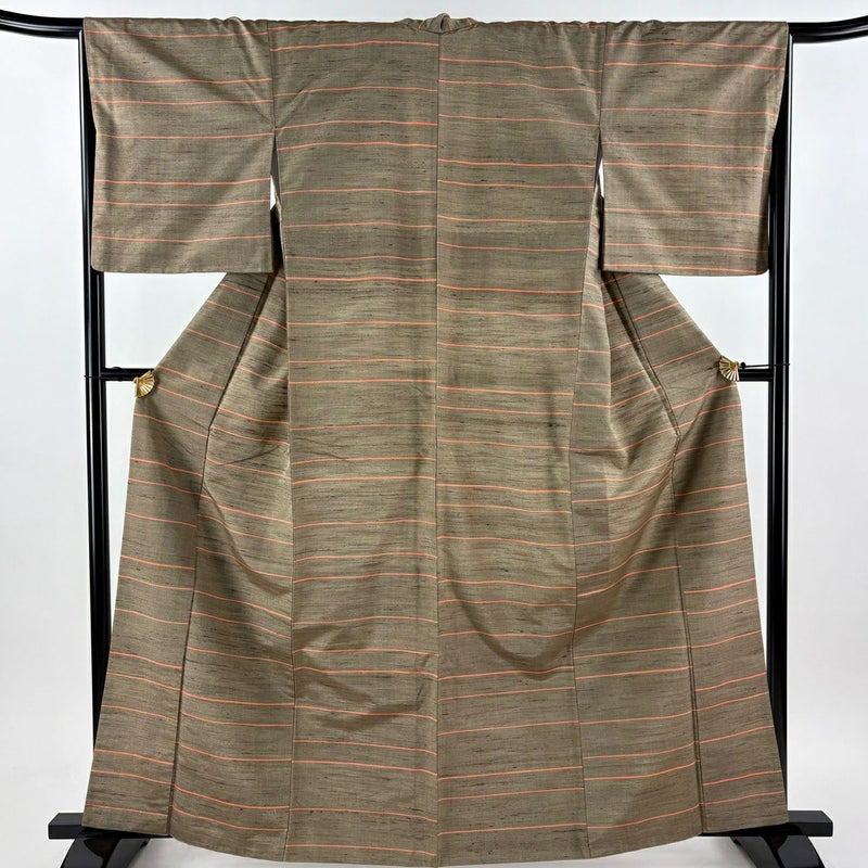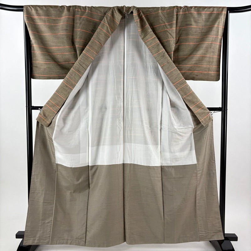 【紬】 茶系 薄茶色 優品 B 約160cm~約169cm 裄丈66cm (M)size 袖丈49cm -3980 二万以下