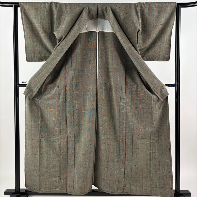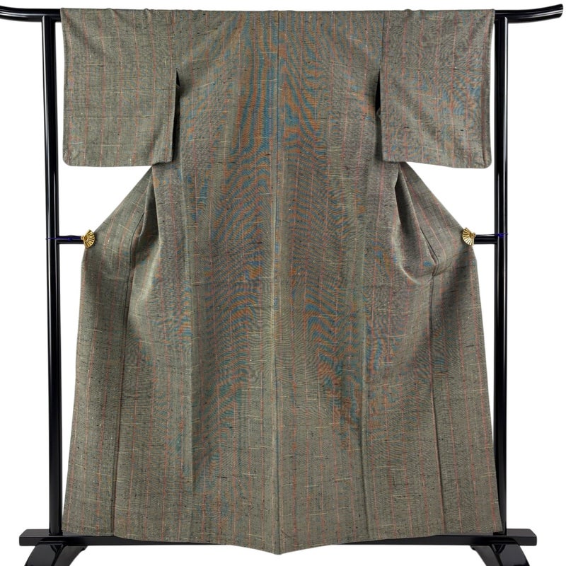 普段着やおしゃれ着として人気の紬でございます。 元々は日常着として着用していたので、その土地の風土に合った様々な種類がある素敵な一品です。 身丈はこれ以上伸ばすことができません。 裄丈はこれ以上伸ばすことができません。 衿裏所々と背あて所々にホックシミがございます。 リユース品としては目立った染み傷なく、状態の良いお品でございます。 ※なお、厳しく商品の状態確認を行っておりますが、記載の汚れ以外にも見落とし箇所がある可能性がある旨ご了承いただけますと幸いです。 沢山の商品の中からご覧いただき誠にありがとうございます。