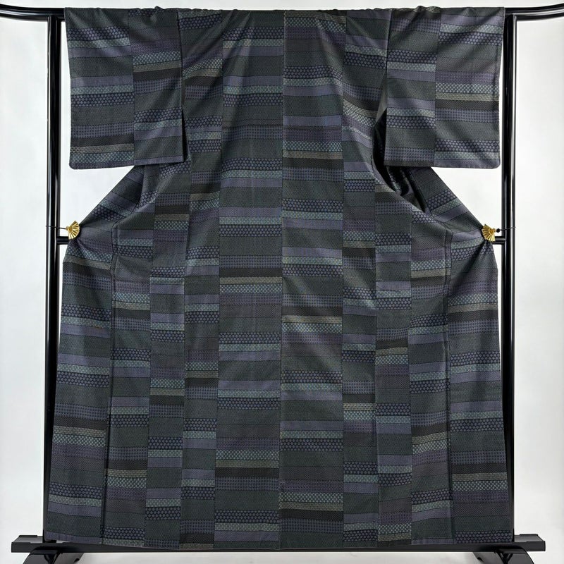 【紬】 緑系 深緑 秀品 B 約160cm~約169cm 裄丈63cm-64cm (M)size 袖丈49cm 4000-7980 二万以下