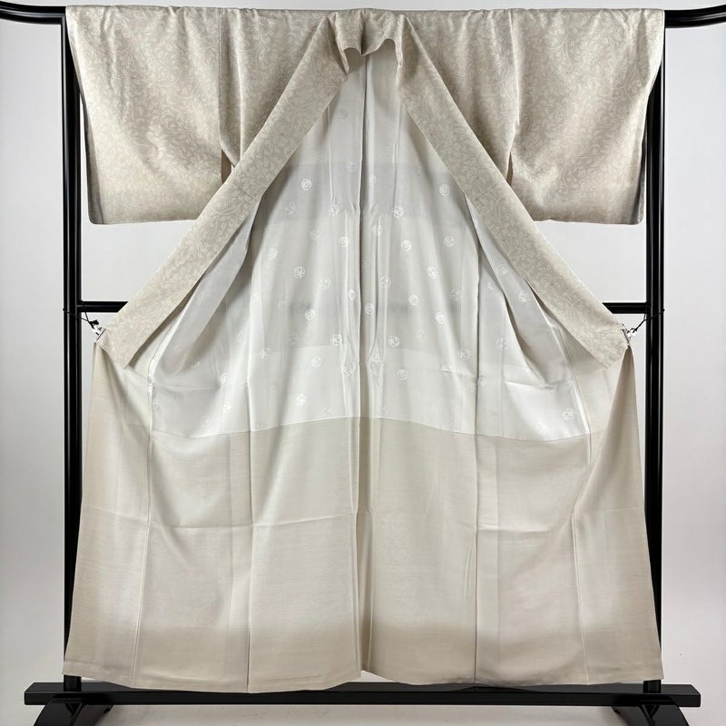 【紬】 白系 ベージュ 逸品 B 約150cm~約159cm 裄丈66cm (M)size 袖丈48cm 30000- 五万以下