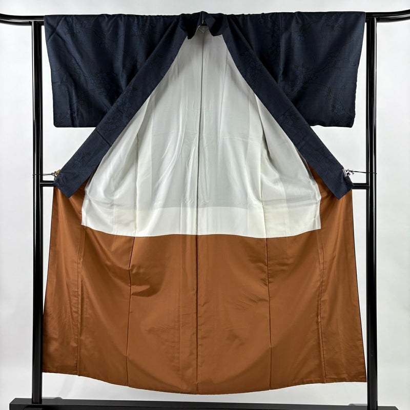 【着物ランク】秀品 【素材】正絹 【身丈】約153.5cm 【裄丈】約62cm 【袖丈】約44.5cm 【袖幅】約32.5cm 【前幅】約22.5cm 【後幅】約28.5cm 【サイズ】S 【着物仕立て】袷 【着用時期】10~5月 【状態ランク】ランクB 【着物着用シーン】気軽なパーティー、観劇、食事会、正月、気軽なお茶会、街着