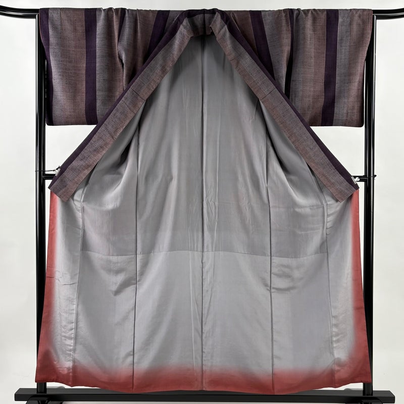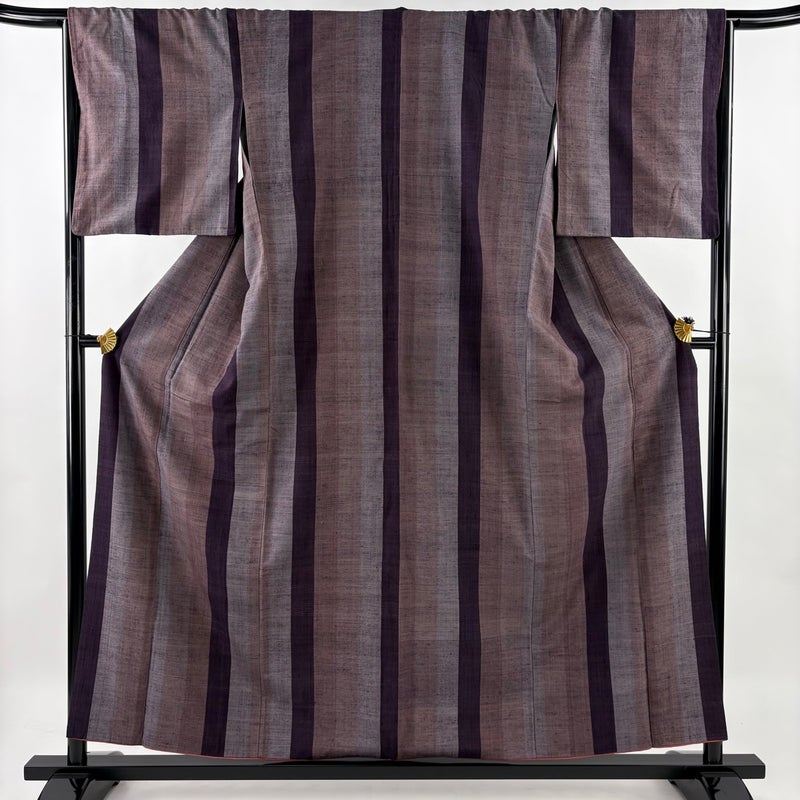 【紬】 茶系 茶紫 秀品 A 約150cm~約159cm 裄丈66cm (M)size 袖丈47cm 7990-9980 美品 二万以下