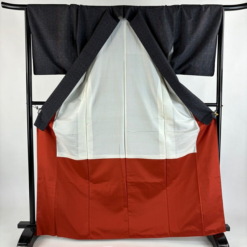【着物ランク】秀品 【素材】正絹 【身丈】約167cm 【裄丈】約66.5cm 【袖丈】約48cm 【袖幅】約34cm 【前幅】約24cm 【後幅】約29cm 【サイズ】M 【着物仕立て】袷 【着用時期】10~5月 【状態ランク】ランクB 【着物着用シーン】気軽なパーティー、観劇、食事会、正月、気軽なお茶会、街着