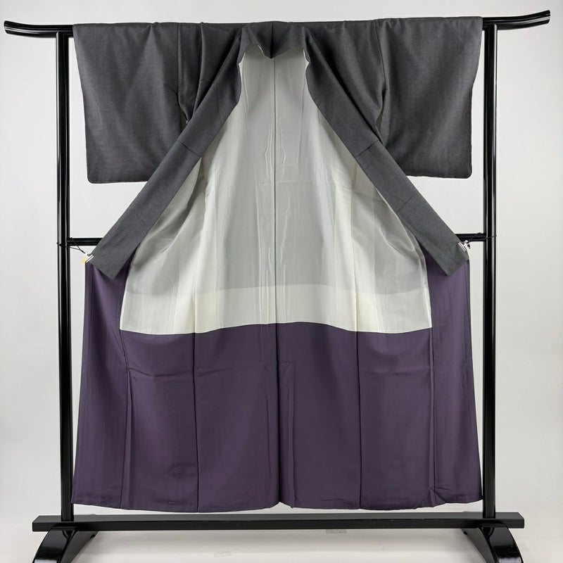 【紬】 灰色系 黒灰 秀品 A 約150cm~約159cm 裄丈62cm以下 (S)size 袖丈49cm 7990-9980 美品 二万以下