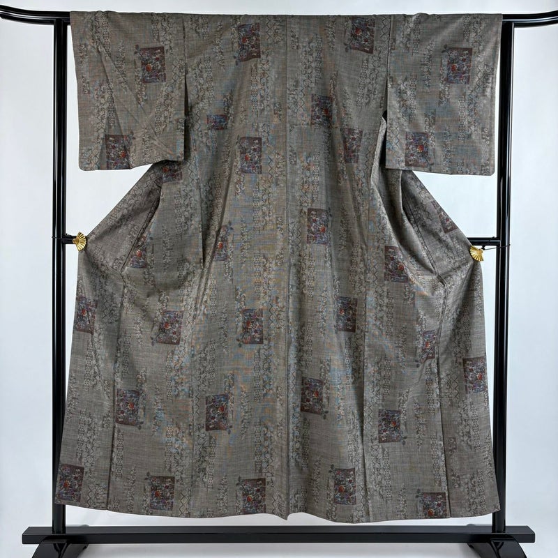 【着物ランク】秀品 【素材】正絹 【身丈】約153cm 【裄丈】約62.5cm 【袖丈】約48.5cm 【袖幅】約33cm 【前幅】約25cm 【後幅】約30cm 【サイズ】S 【着物仕立て】袷 【着用時期】10~5月 【状態ランク】ランクA 【着物着用シーン】気軽なパーティー、観劇、食事会、正月、気軽なお茶会、街着
