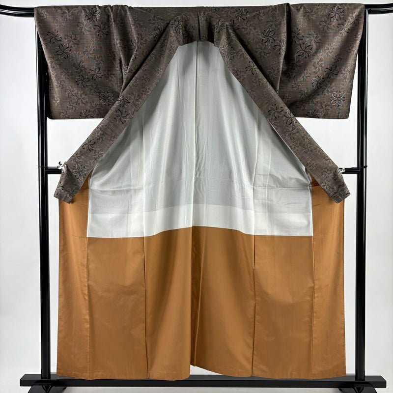 【紬】 茶系 焦茶色 秀品 B 約150cm~約159cm 裄丈67cm-68cm (L)size 袖丈46cm以下 4000-7980 二万以下