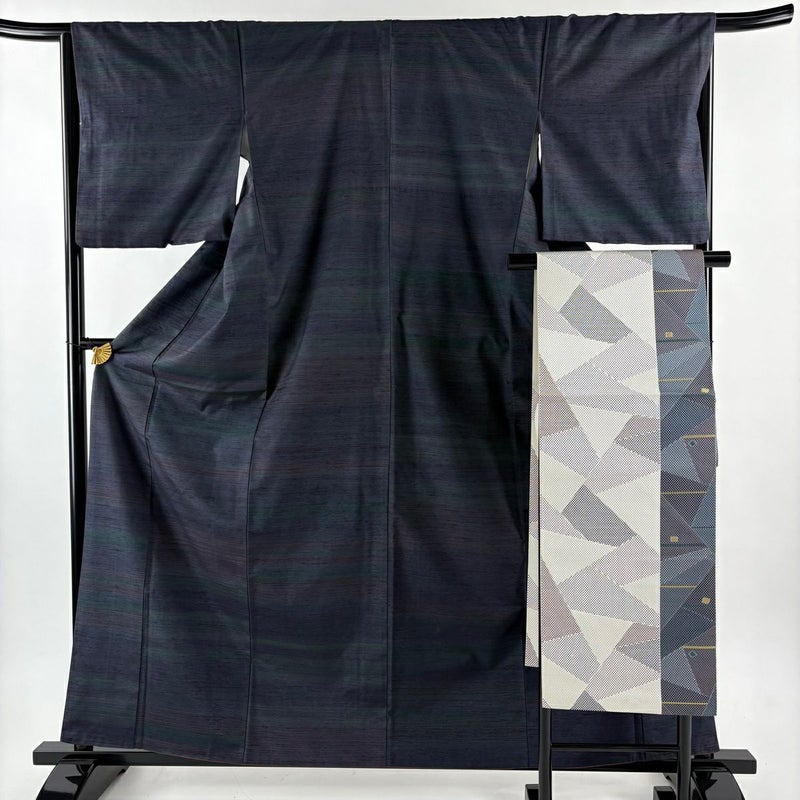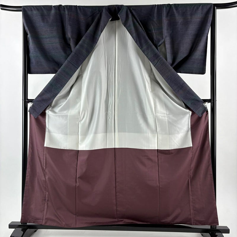 【紬】 青系 濃紺 秀品 A 約160cm~約169cm 裄丈66cm (M)size 袖丈48cm 9990-29990 美品 五万以下