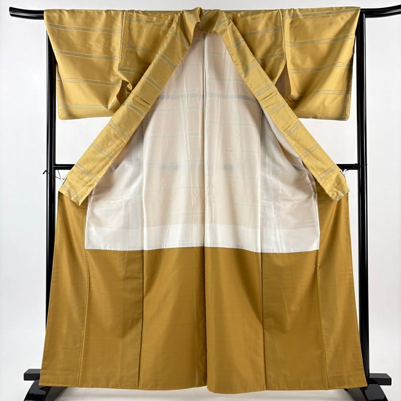 【紬】 黄色系 薄黄土色 秀品 A 約160cm~約169cm 裄丈66cm (M)size 袖丈48cm 9990-29990 美品 五万以下