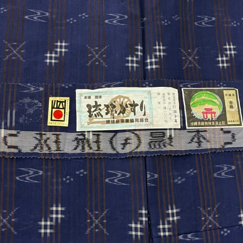 琉球絣とは沖縄県で生産される織物の一つでございます。 独特な絣模様は全国の絣のルーツに影響を与えたとされており、現代でも数多くの愛好家に愛されております。 身丈はこれ以上伸ばすことができません。 裄丈はこれ以上伸ばすことができません。 両袖山と両肩山にヤケ、両袖口中に汚れがございます。 衿裏にホックシミがございます。 ご購入の際はその点ご留意ください。 ※なお、厳しく商品の状態確認を行っておりますが、記載の汚れ以外にも見落とし箇所がある可能性がある旨ご了承いただけますと幸いです。 沢山の商品の中からご覧いただき誠にありがとうございます。 【PR2】