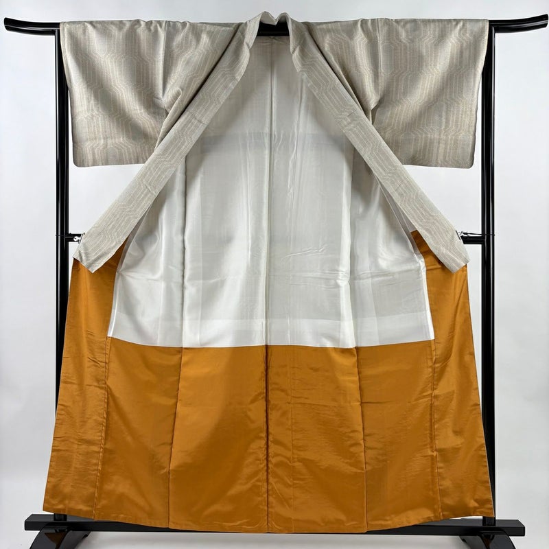 【着物ランク】秀品 【素材】正絹 【身丈】約160cm 【裄丈】約65cm 【袖丈】約46cm 【袖幅】約33.5cm 【前幅】約24cm 【後幅】約30.5cm 【サイズ】M 【着物仕立て】袷 【着用時期】10~5月 【状態ランク】ランクA 【着物着用シーン】気軽なパーティー、観劇、食事会、正月、気軽なお茶会、街着