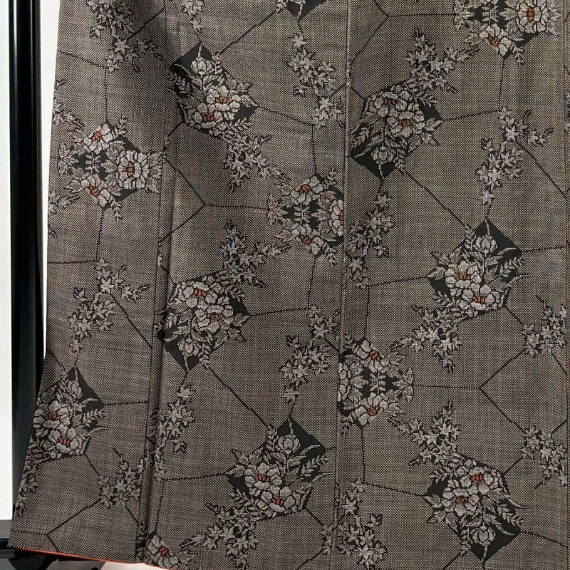 【着物ランク】秀品 【素材】正絹 【身丈】約165cm 【裄丈】約65cm 【袖丈】約45.5cm 【袖幅】約33.5cm 【前幅】約24cm 【後幅】約29.5cm 【サイズ】M 【着物仕立て】袷 【着用時期】10~5月 【状態ランク】ランクC 【着物着用シーン】気軽なパーティー、観劇、食事会、正月、気軽なお茶会、街着