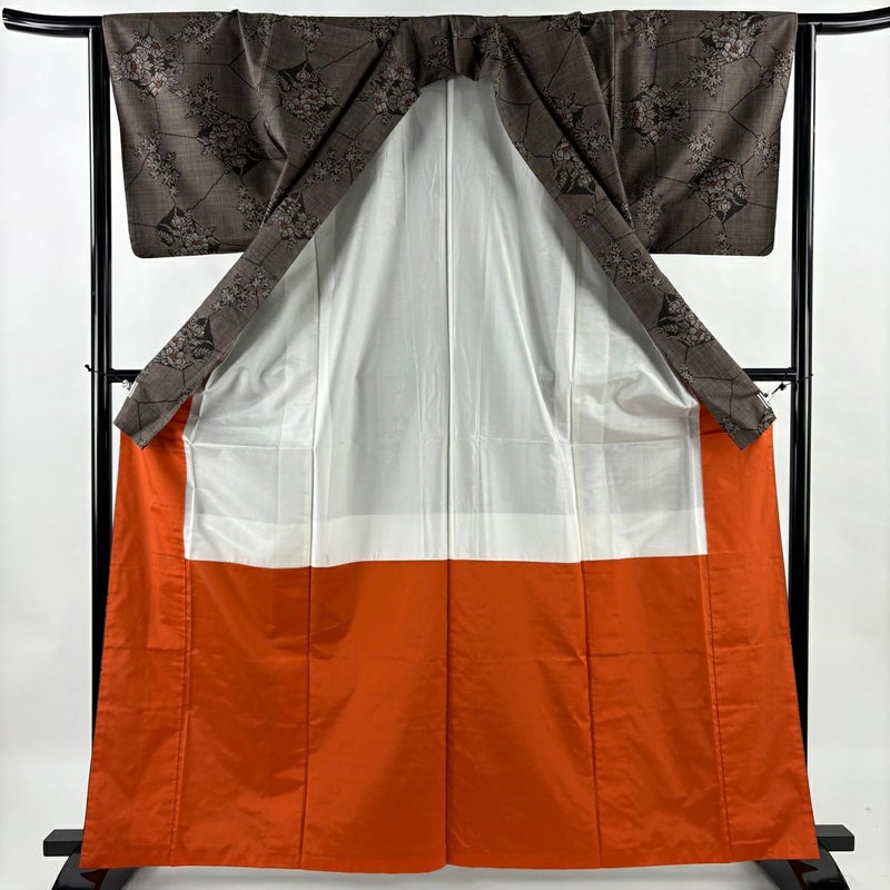 【紬】 茶系 焦茶色 秀品 C 約160cm~約169cm 裄丈65cm (M)size 袖丈46cm以下 4000-7980 二万以下