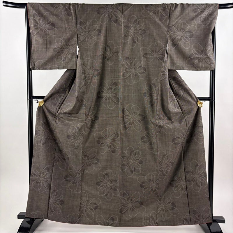 【紬】 茶系 焦茶色 秀品 A 約160cm~約169cm 裄丈67cm-68cm (L)size 袖丈49cm 7990-9980 美品 二万以下