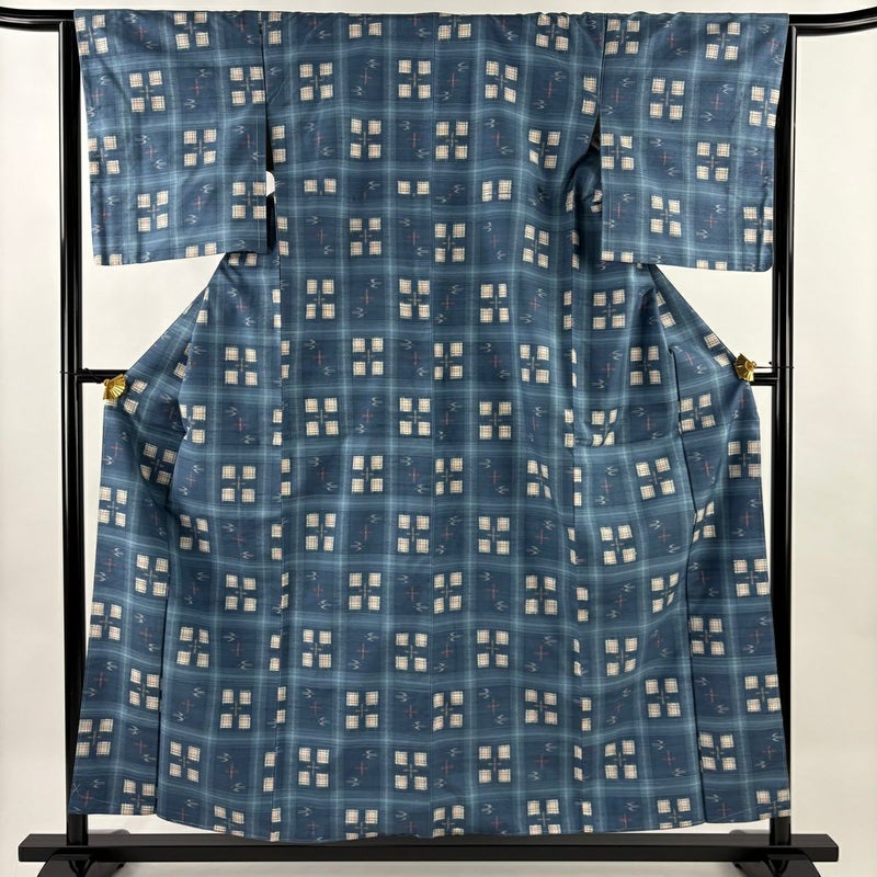 【紬】 灰色系 青灰色 秀品 A 約150cm~約159cm 裄丈66cm (M)size 袖丈49cm 7990-9980 美品 二万以下