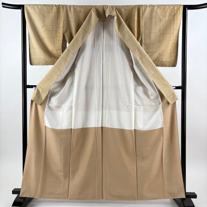 【紬】 茶系 薄茶色 秀品 B 約160cm~約169cm 裄丈63cm-64cm (M)size 袖丈50cm-60cm 4000-7980 二万以下