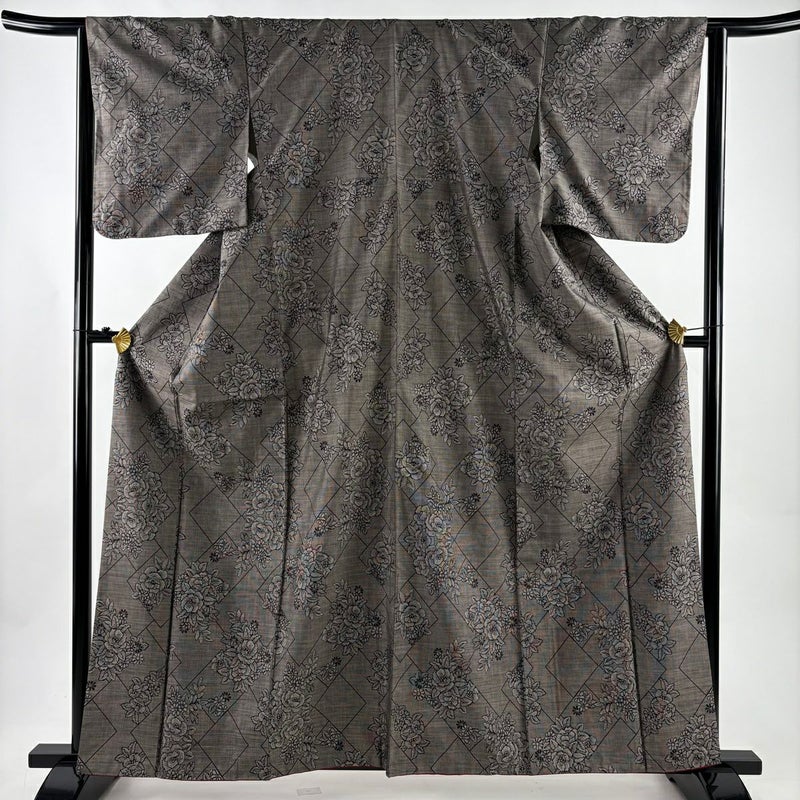 【着物ランク】秀品 【素材】正絹 【身丈】約162cm 【裄丈】約64.5cm 【袖丈】約49.5cm 【袖幅】約32.5cm 【前幅】約23cm 【後幅】約29.5cm 【サイズ】M 【着物仕立て】袷 【着用時期】10~5月 【状態ランク】ランクA 【着物着用シーン】気軽なパーティー、観劇、食事会、正月、気軽なお茶会、街着