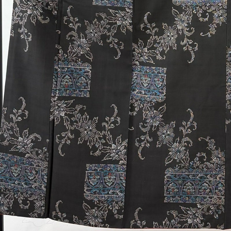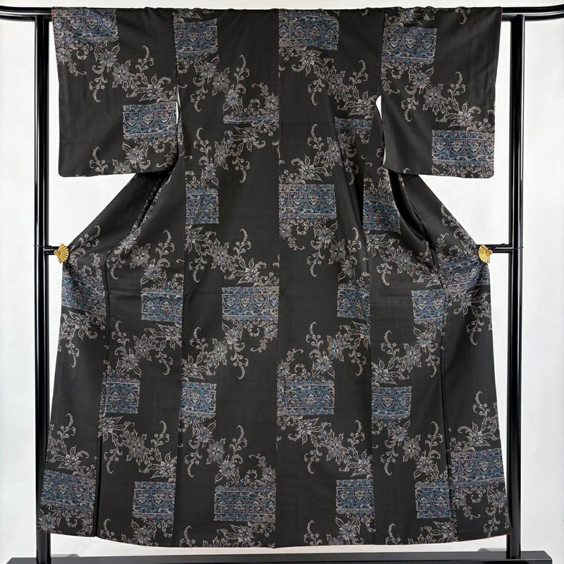 【着物ランク】秀品 【素材】正絹 【身丈】約154cm 【裄丈】約62cm 【袖丈】約49cm 【袖幅】約32cm 【前幅】約22.5cm 【後幅】約28.5cm 【サイズ】S 【着物仕立て】袷 【着用時期】10~5月 【状態ランク】ランクB 【着物着用シーン】気軽なパーティー、観劇、食事会、正月、気軽なお茶会、街着
