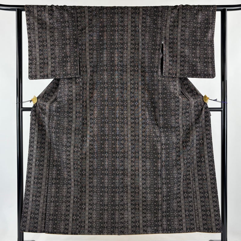 普段着やおしゃれ着として人気の紬でございます。 元々は日常着として着用していたので、その土地の風土に合った様々な種類がある素敵な一品です。 両袖口中に汚れ、左袖口にシワがございます。 リユース品としては目立った染み傷なく、状態の良いお品でございます。 ※なお、厳しく商品の状態確認を行っておりますが、記載の汚れ以外にも見落とし箇所がある可能性がある旨ご了承いただけますと幸いです。 沢山の商品の中からご覧いただき誠にありがとうございます。 【PR2】