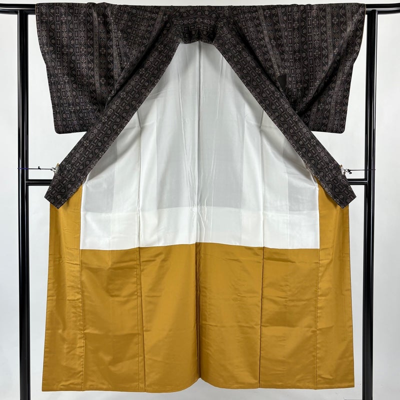 【紬】 茶系 焦茶色 秀品 A 約150cm~約159cm 裄丈62cm以下 (S)size 袖丈49cm 7990-9980 美品 二万以下