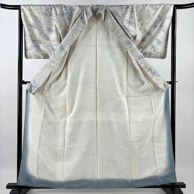 【紬】 灰色系 灰白 秀品 A 約160cm~約169cm 裄丈63cm-64cm (M)size 袖丈46cm以下 7990-9980 美品 二万以下