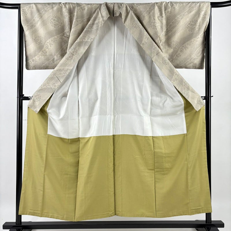 【着物ランク】秀品 【素材】正絹 【身丈】約154.5cm 【裄丈】約67cm 【袖丈】約47cm 【袖幅】約33.5cm 【前幅】約23.5cm 【後幅】約29cm 【サイズ】M 【着物仕立て】袷 【着用時期】10~5月 【状態ランク】ランクA 【着物着用シーン】気軽なパーティー、観劇、食事会、正月、気軽なお茶会、街着