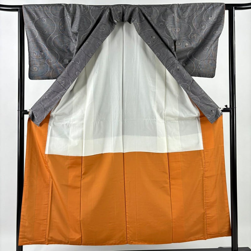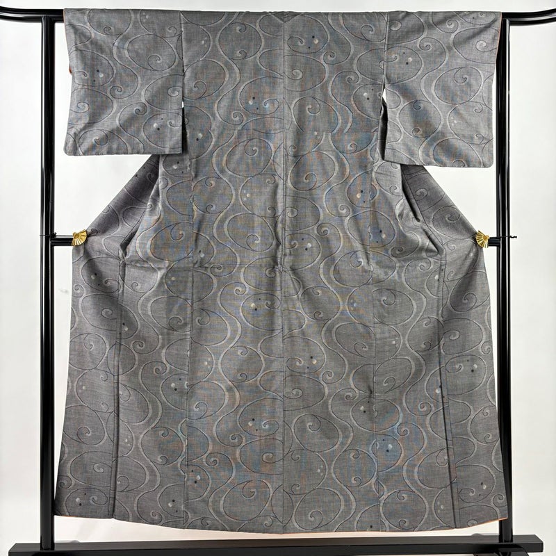 【紬】 灰色系 黒灰 秀品 B 約150cm~約159cm 裄丈62cm以下 (S)size 袖丈47cm 4000-7980 二万以下