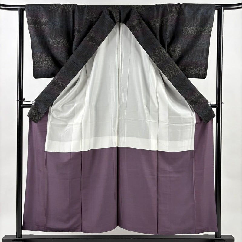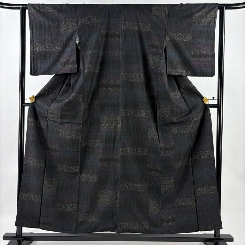 【紬】 黒系 墨色 秀品 B 約150cm~約159cm 裄丈63cm-64cm (S)size 袖丈49cm 4000-7980 二万以下
