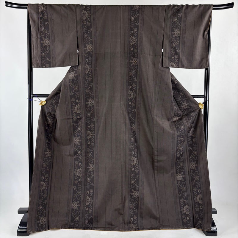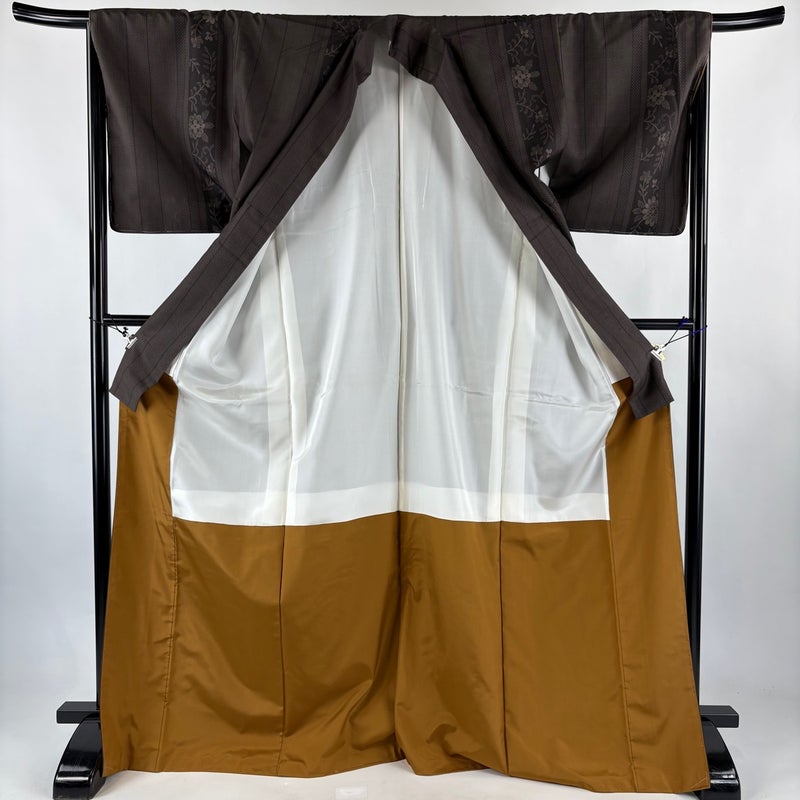 【紬】 茶系 焦茶色 秀品 A 約170cm~約179cm 裄丈67cm-68cm (L)size 袖丈49cm 7990-9980 美品 二万以下