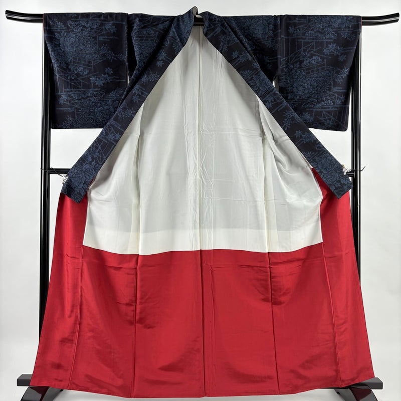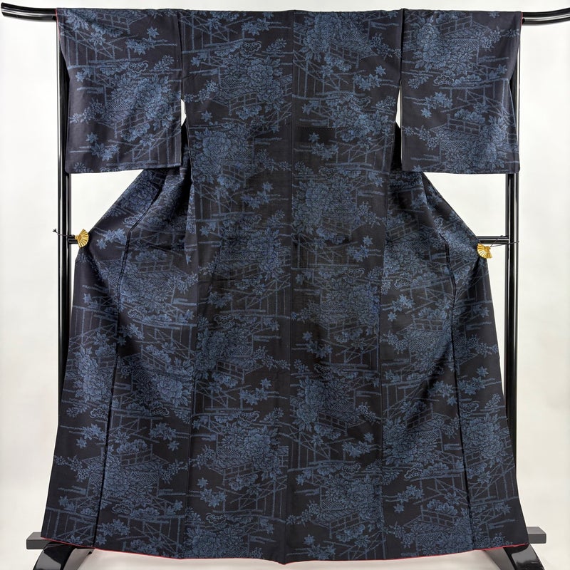 【着物ランク】秀品 【素材】正絹 【身丈】約163cm 【裄丈】約67.5cm 【袖丈】約49.5cm 【袖幅】約34.5cm 【前幅】約26cm 【後幅】約30.5cm 【サイズ】L 【着物仕立て】袷 【着用時期】10~5月 【状態ランク】ランクB 【着物着用シーン】気軽なパーティー、観劇、食事会、正月、気軽なお茶会、街着