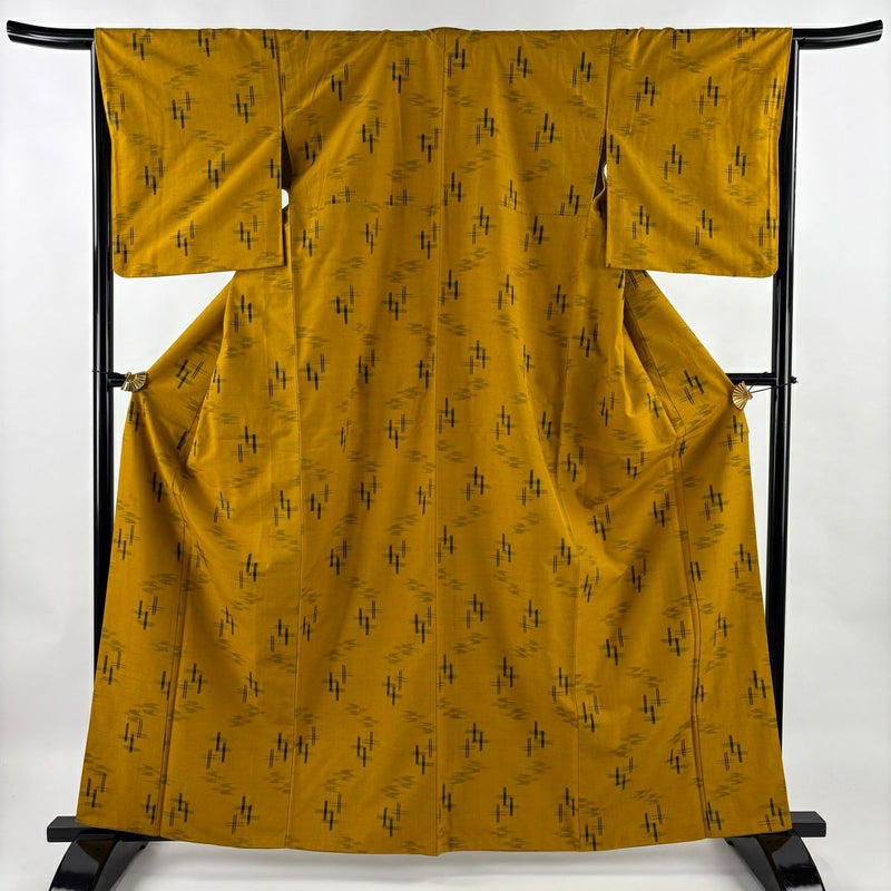 【紬】 黄色系 山吹茶色 秀品 B 約160cm~約169cm 裄丈66cm (M)size 袖丈48cm 4000-7980 二万以下