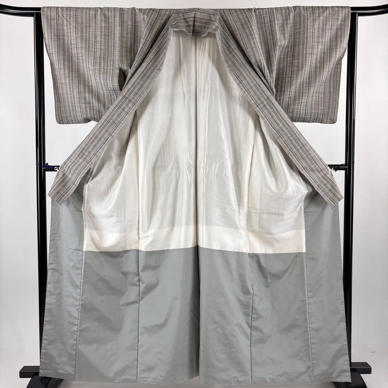 【紬】 灰色系 灰色 秀品 A 約160cm~約169cm 裄丈63cm-64cm (M)size 袖丈48cm 7990-9980 美品 二万以下