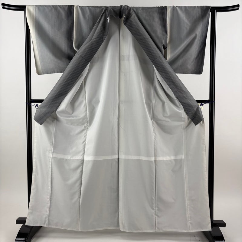 【紬】 灰色系 灰色 秀品 A 約160cm~約169cm 裄丈63cm-64cm (M)size 袖丈49cm 7990-9980 美品 二万以下