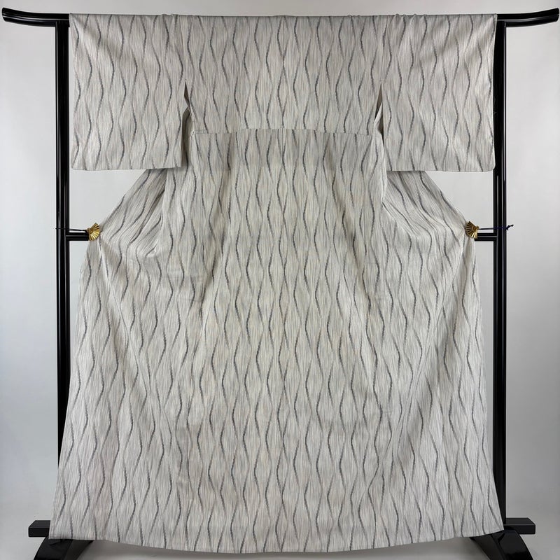 【紬】 灰色系 灰白 秀品 A 約160cm~約169cm 裄丈63cm-64cm (M)size 袖丈48cm 9990-29990 美品 二万以下