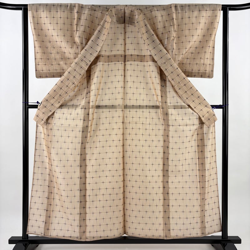 【着物ランク】秀品 【素材】正絹 【身丈】約159.5cm 【裄丈】約62.5cm 【袖丈】約48.5cm 【袖幅】約32.5cm 【前幅】約24.5cm 【後幅】約28.5cm 【サイズ】S 【着物仕立て】薄物 【着用時期】7~8月 【状態ランク】ランクB 【着物着用シーン】気軽なパーティー、観劇、食事会、正月、気軽なお茶会、街着