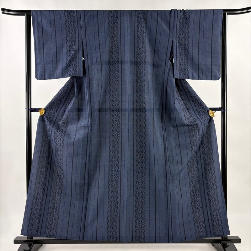 【紬】 青系 紺色 名品 B 約150cm~約159cm 裄丈63cm-64cm (M)size 袖丈48cm 9990-29990 五万以下