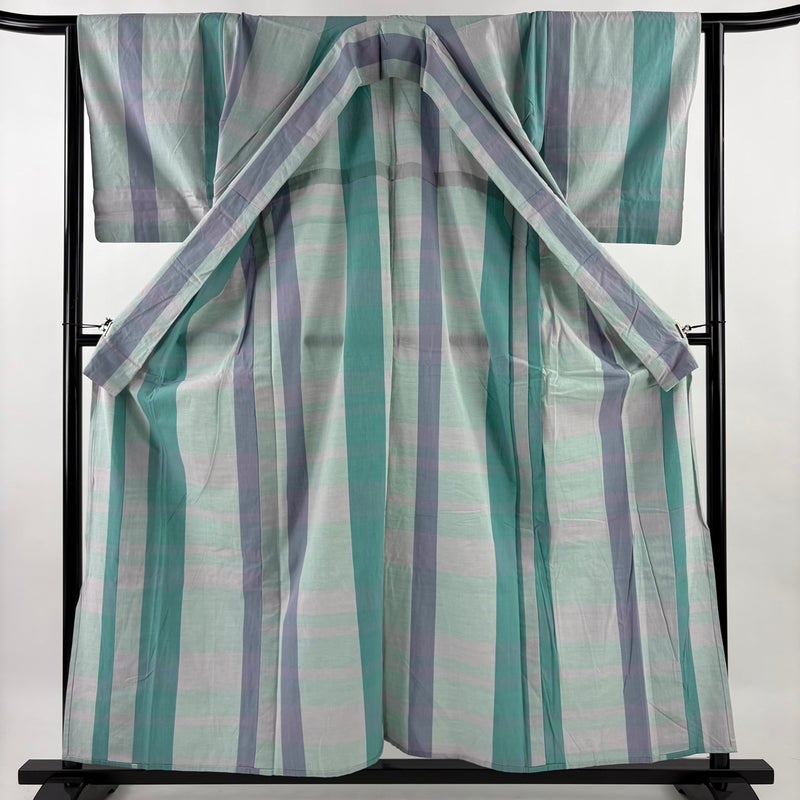 【着物ランク】名品 【素材】綿 【身丈】約157.5cm 【裄丈】約64cm 【袖丈】約48.5cm 【袖幅】約31cm 【前幅】約27cm 【後幅】約33.5cm 【サイズ】M 【着物仕立て】単衣 【着用時期】6/9月 【状態ランク】ランクB 【着物着用シーン】気軽なパーティー、観劇、食事会、正月、気軽なお茶会、街着