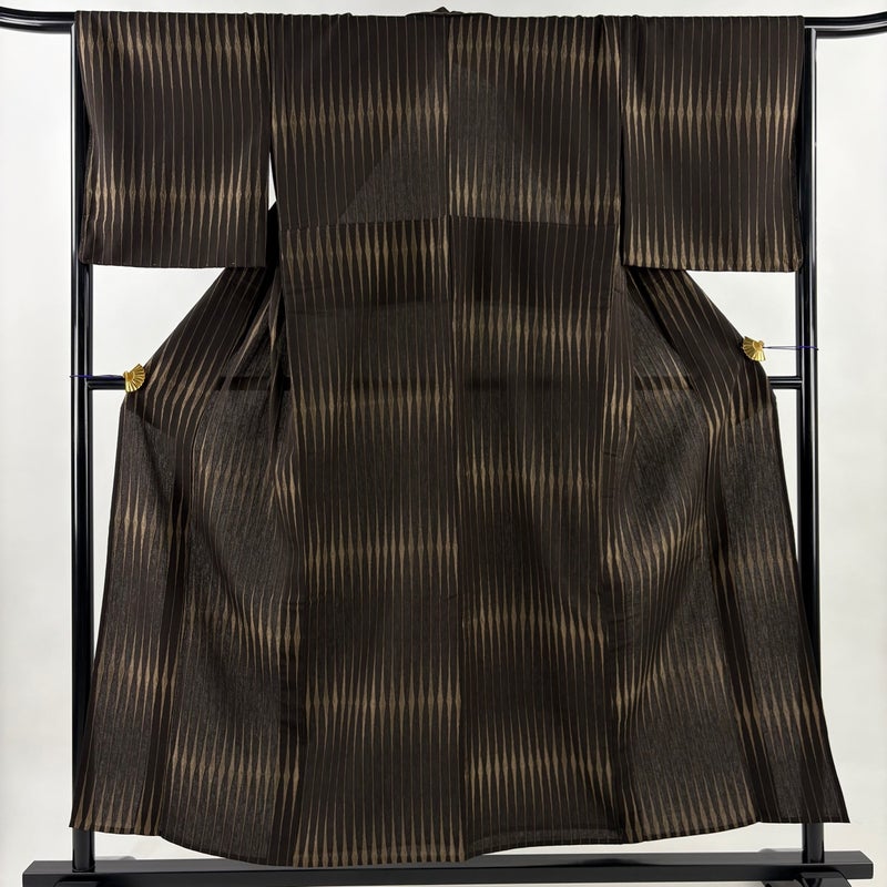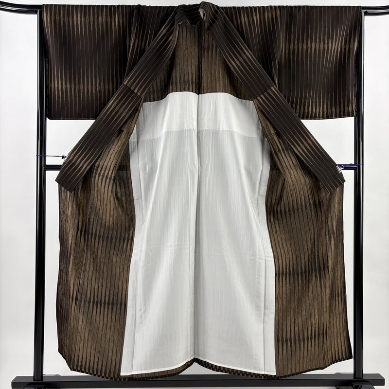 【紬】 茶系 焦茶色 逸品 A 約150cm~約159cm 裄丈65cm (M)size 袖丈47cm 30000- 美品 五万以下