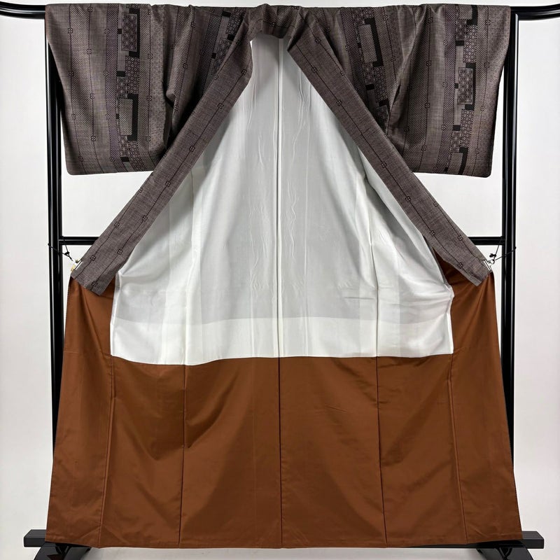 【紬】 茶系 焦茶色 秀品 A 約160cm~約169cm 裄丈66cm (M)size 袖丈48cm 7990-9980 美品 二万以下