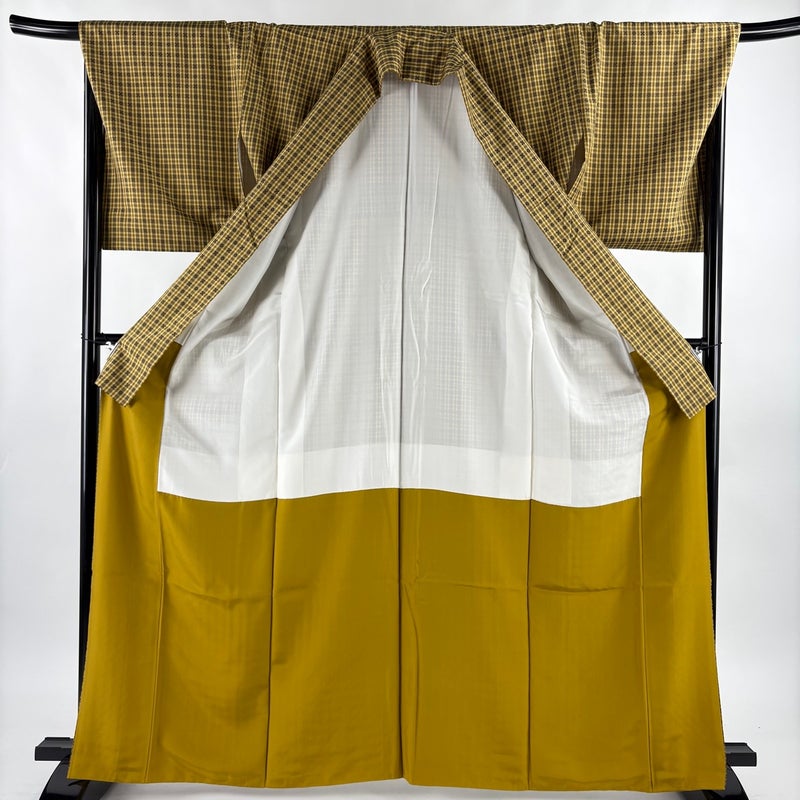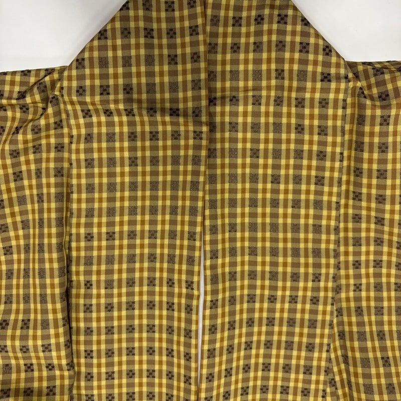 【紬】 黄色系 薄黄土色 名品 A 約160cm~約169cm 裄丈69cm以上 (L)size 袖丈48cm 9990-29990 美品 二万以下