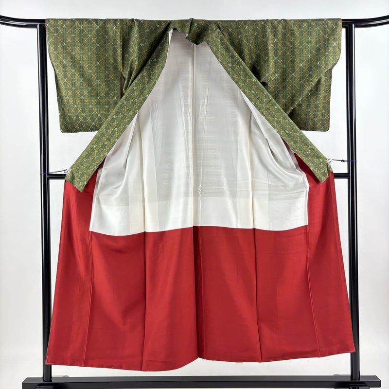 【着物ランク】逸品 【素材】正絹 【身丈】約151cm 【裄丈】約61.5cm 【袖丈】約49cm 【袖幅】約31cm 【前幅】約25cm 【後幅】約28.5cm 【サイズ】S 【着物仕立て】袷 【着用時期】10~5月 【状態ランク】ランクA 【着物着用シーン】気軽なパーティー、観劇、食事会、正月、気軽なお茶会、街着