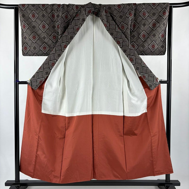 【紬】 茶系 焦茶色 名品 B 約150cm~約159cm 裄丈63cm-64cm (S)size 袖丈46cm以下 9990-29990 二万以下