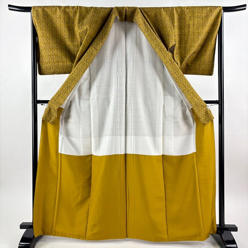 【紬】 黄色系 山吹茶色 名品 B 約160cm~約169cm 裄丈66cm (M)size 袖丈48cm 9990-29990 二万以下
