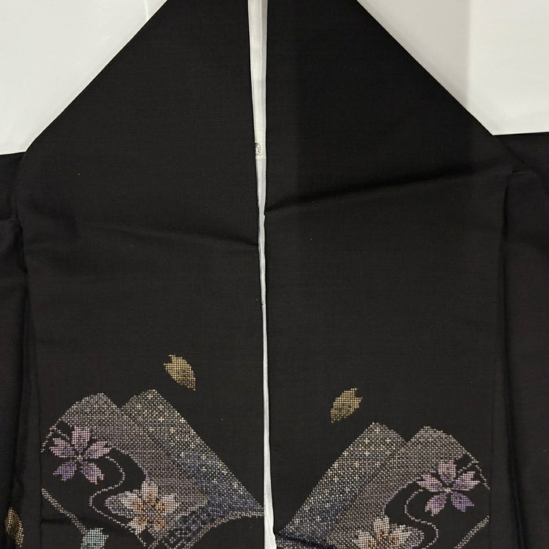 【紬】 黒系 墨色 名品 B 約160cm~約169cm 裄丈69cm以上 (L)size 袖丈48cm 9990-29990 二万以下