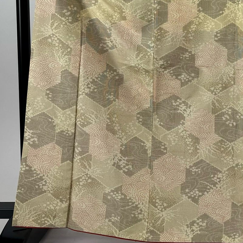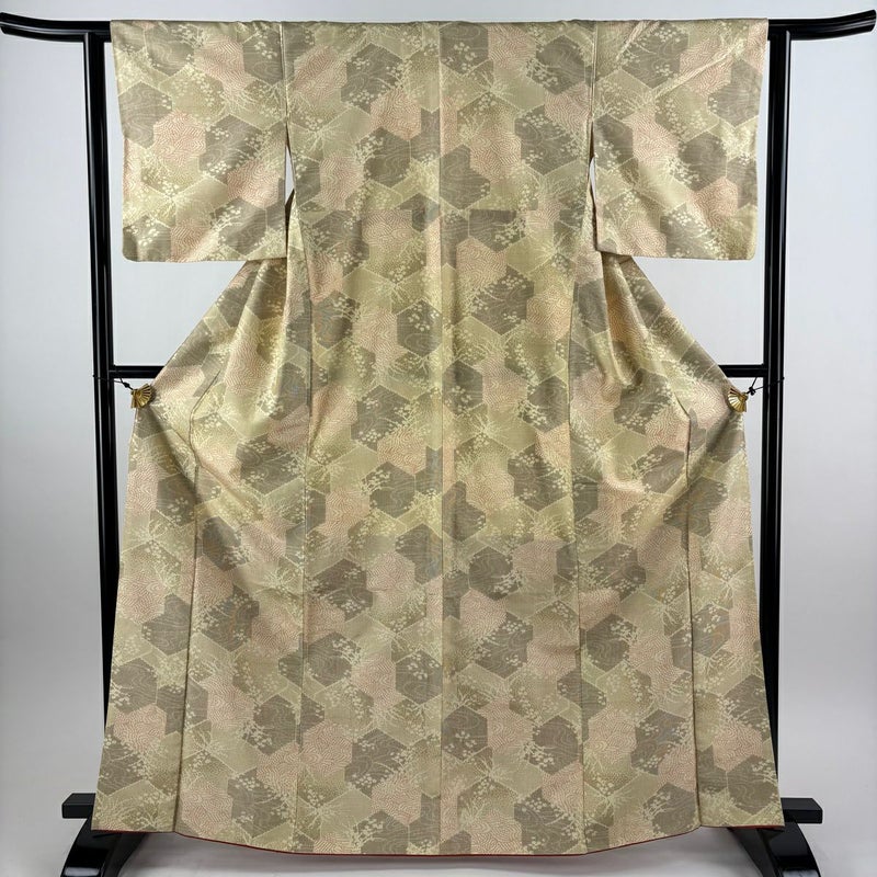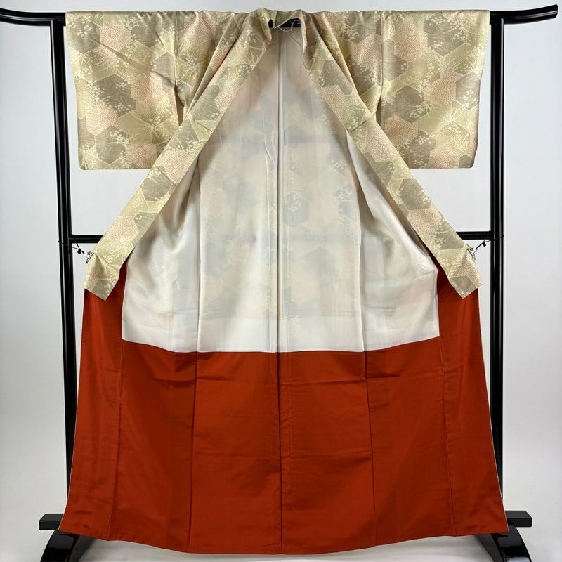 【着物ランク】優品 【素材】正絹 【身丈】約166cm 【裄丈】約62cm 【袖丈】約47cm 【袖幅】約33cm 【前幅】約25cm 【後幅】約29cm 【サイズ】S 【着物仕立て】袷 【着用時期】10~5月 【状態ランク】ランクA 【着物着用シーン】気軽なパーティー、観劇、食事会、正月、気軽なお茶会、街着