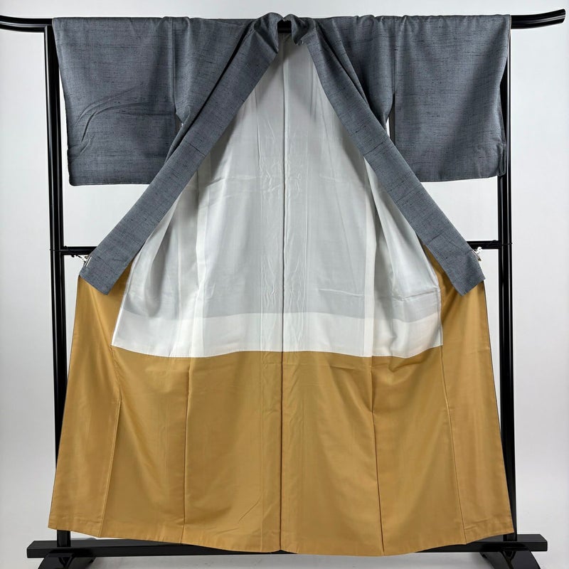 【紬】 灰色系 灰色 優品 B 約150cm~約159cm 裄丈65cm (M)size 袖丈49cm -3980 二万以下